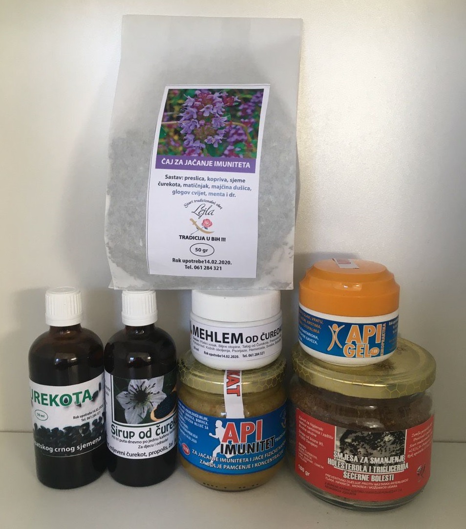 Api terapija je u ponudi Biljne apoteke Lejla, ali i mehlem od ćurekota, kantariona, maslačka, propolisa. Također ovdje možete da nabavite i api gel protiv svih bolova i sportskih povreda, kao i akno losion.