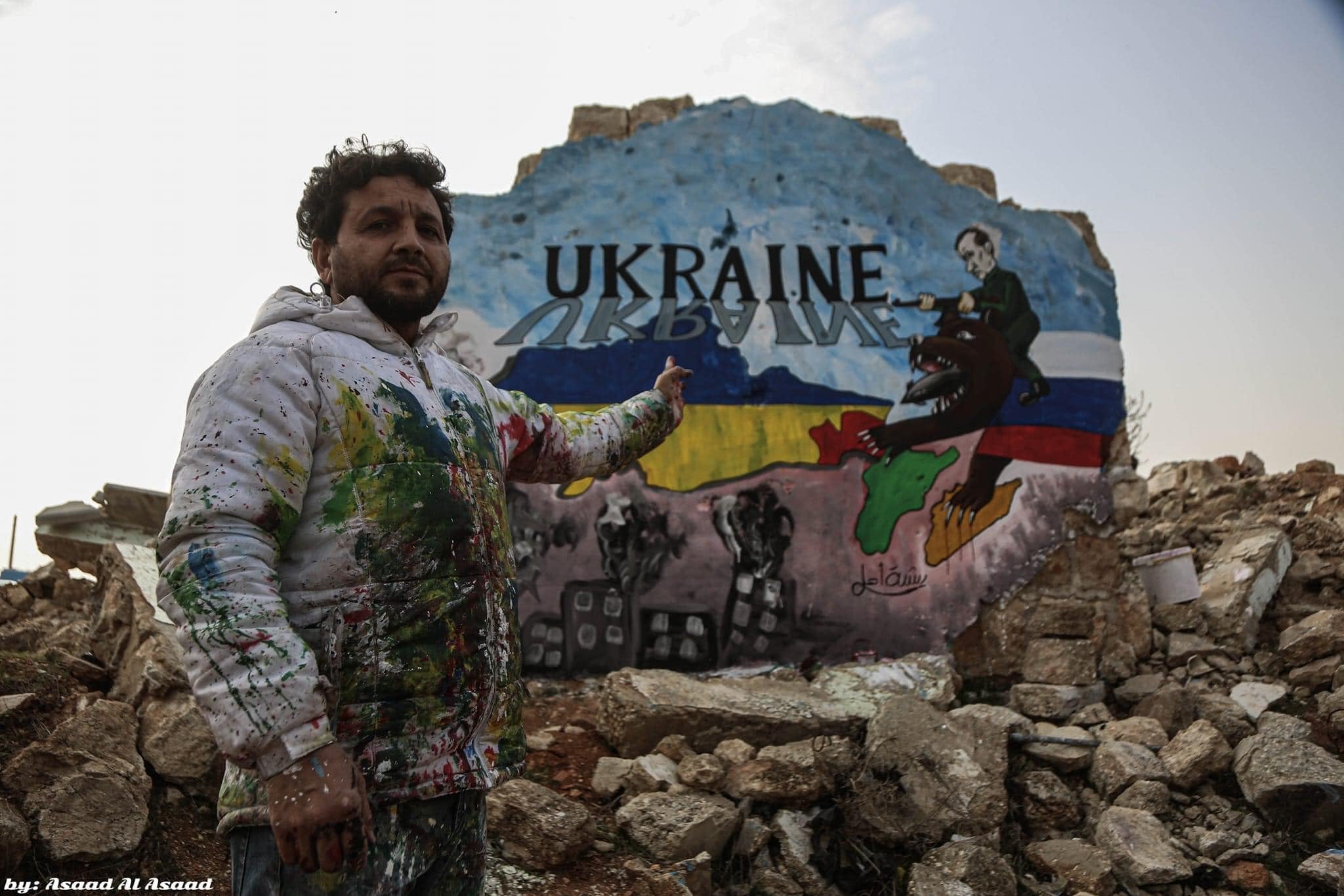 Poruka solidarnosti sa Ukrajinom iz Sirije, mural naslikan na ostacima kuće srušene u bombardovanju ruske vojske. Evropske zemlje su prvog dana rata otvorile svoje granice za izbeglice iz Ukrajine. Bilo je potrebno četiri godine rata i desetine hiljada poginulih da evropske zemlje otvore vrata za izbeglice iz Sirije. U jesen 2015., granice su ubrzo zatvorene.