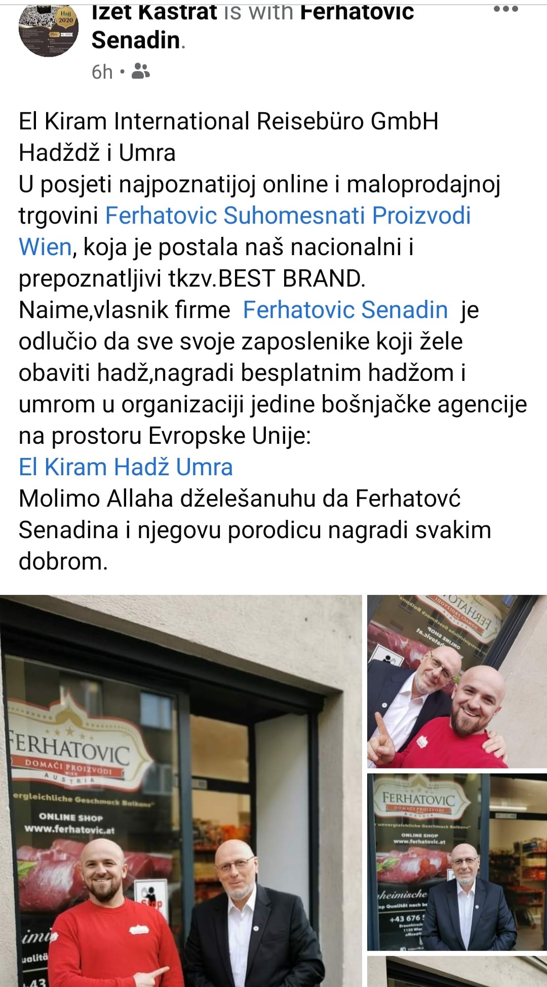 Firma “Ferhatović Suhomesnati proizvodi Wien” obradovala je svoje uposlenike. Vlasnik firme, Senadin Ferhatović je odlučio da radnike svoje firme iznenadi putovanjem na hadž.