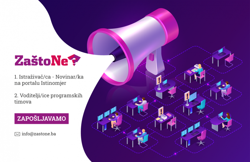 U.G. “Zašto ne” je u potrazi za kandidatkinjama i kandidatima za popunjavanje sljedećih pozicija: novinar/ka – istraživač/ica na portalu Istinomjer.ba i voditelje programskih timova.